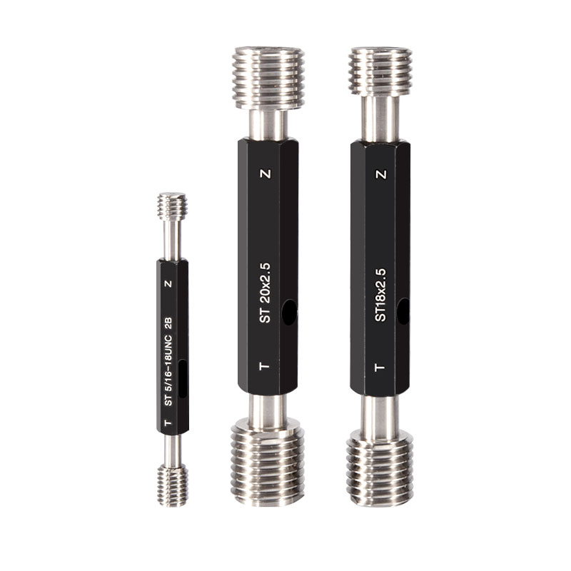 钢丝螺套专用塞规 也叫ST底孔螺纹塞规、安装钢丝螺套用内螺纹塞规、螺套塞规。用于检查安装钢丝螺套用螺纹底孔。分为单头整体塞规和双头插柄塞规。成付提供,一付中含通规和止规。检测时,通规能顺利通过螺纹孔,而止规进入两个螺距以内,则判定此安装钢丝螺套用内螺纹合格。
